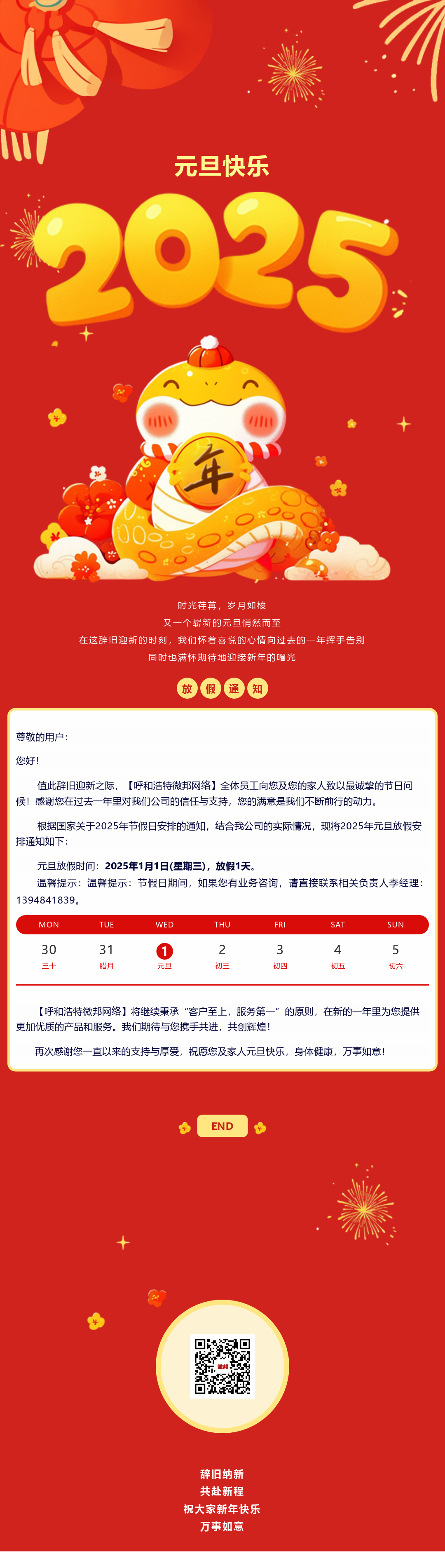 微邦網絡|2025年元旦放假通知